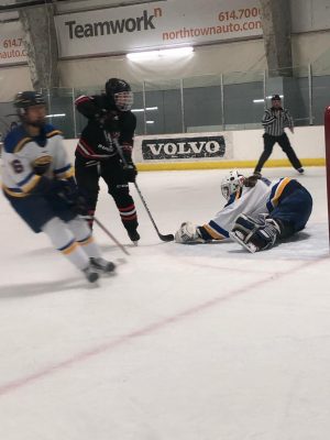 Although it seems like a difficult task to be the only girl on a boys’ varsity team, Griege is not phased. “Playing on the boys team isn’t as hard as people think. They don’t treat me any different because I am a girl, and they respect me as a teammate. I have played on many boys’ hockey teams, so I am used to it.”
