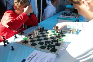 Chess Club Member Plays a Riveting Game of Chess with Carnival Attendee