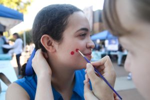 Art Club Student Paints a Flower Design on Carnival Attendee’s Face