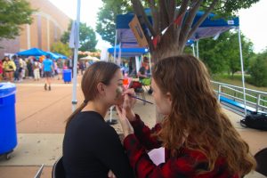 A volunteer painting a customer’s face at the face painting booth.