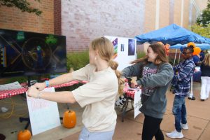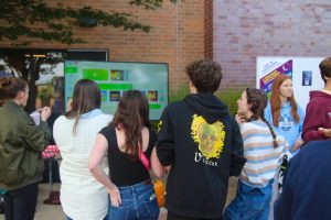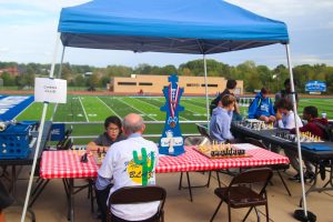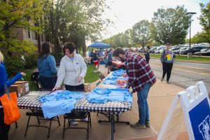 A group of volunteers sell Homecoming shirts at the entrance of the carnival.