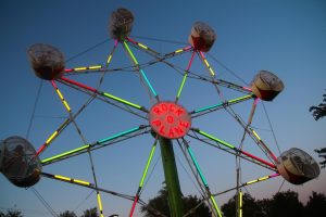 The Ferris wheel ride at sunset.